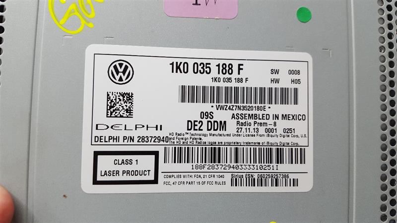 VOLKSWAGEN PASSAT 2013 2014 2015 Receiver (radio), W/o Navigation ID 1K0035188G Part:638 Stock:106323 Radio Audio 1K0035188F